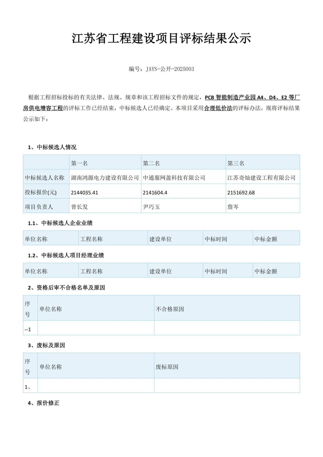 江蘇省工程建設(shè)項目評標結(jié)果公示