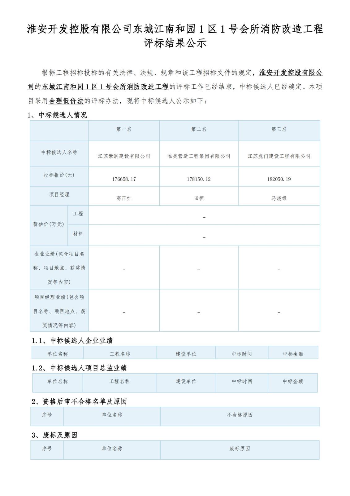 淮安開發(fā)控股有限公司東城江南和園1區(qū)1號會所消防改造工程 評標結(jié)果公示