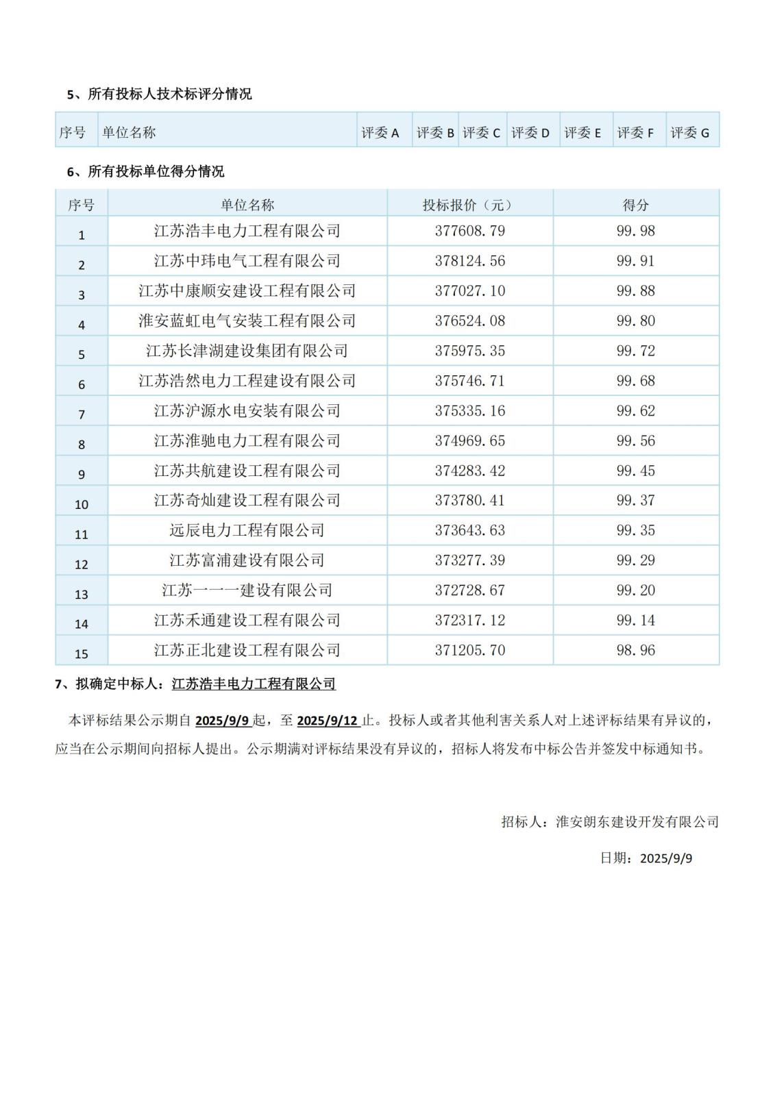 中標(biāo)候選人公示